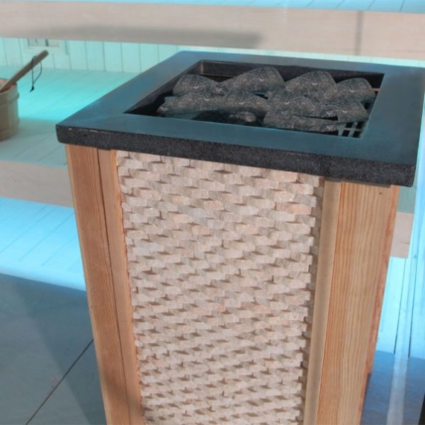 Das Steindekor der Rückwand hat einen besonderen optischen Reiz. Es hält die Wärme länger in der Sauna und macht das Saunaerlebnis intensiver. Die Rückwände werden vormoniert in einem Stück angeliefert.