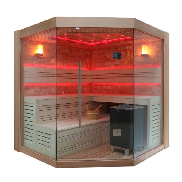 Das Highlight dieser Sauna ist die indirekte LED Beleuchtung. Sowohl die Decke, als auch die Rückwand wird durch viele kleine LED´s indirekt beleuchtet. Das Licht kann wahlweise sanft wechseln, oder auf einer Farbe stehen bleiben. Relaxen Sie in dieser Wohlfühlatmosphäre, oder genießen Sie einen wohltuenden Aufguss. Mit einer EOSPA Sauna holen Sie sich Ihre persönliche Wellnessoase ins eigenen Zuhause.