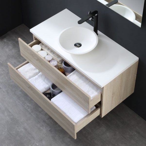 Unsere Badmöbel werden ab Werk komplett vormontiert und stabile verpackt. Es ist kein mühsames Zusammenbauen mehr notwendig. Einfach aufhängen, ausrichten und fertig. So verwirklichen Sie schnell und komfortabel einen tollen Waschbereich in Ihrem Badezimmer.