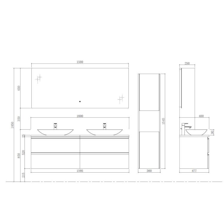- Abmessungen Unterschrank: 1600mm x 520mm x 480mm