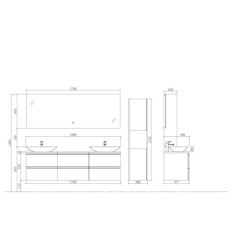 - Abmessungen Unterschrank: 1800mm x 520mm x 480mm