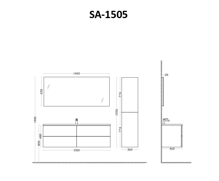 - Abmessungen Unterschrank: 1500mm x 450mm x 460mm