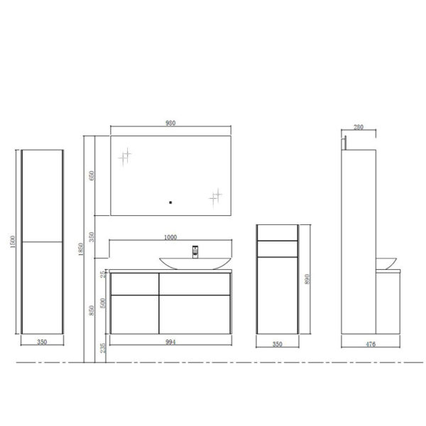 - Abmessungen Unterschrank: 1000mm x 520mm x 480mm