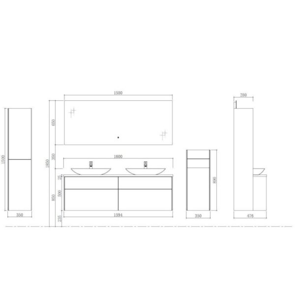 - Abmessungen Unterschrank: 1600mm x 520mm x 480mm