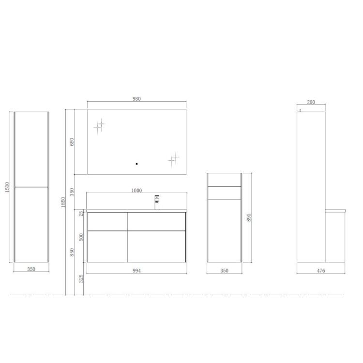 - Abmessungen Unterschrank: 1000mm x 520mm x 480mm